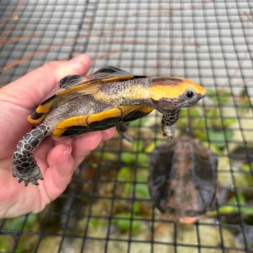 Central American Wood turtles are my personal favorite species of wood turtle. They are veru colorful. Reaching droughly 5-6 inches they are great for indoor or outdoor keeping. They are full of personality and such a hardy and easy to care for species. As hatchlings they prefer to be kept with a large water dish to splash around in. As adults they become more terrestrial but still love to splash around in a shallow water feature. These little ones are 4 months old and thriving.